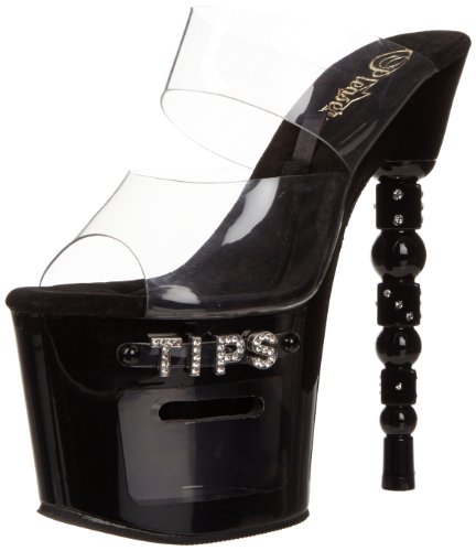 7 Inch Rhinestone Embellished Stacked Dice Heel, 3 1/4 Inch Platform Slide , Two-Band Slide Featuring Inch Tip Jar Inch Design
